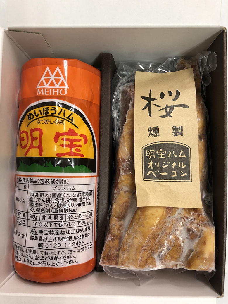 人気のベーコンと幻のハムと言われた「明宝ハム」のギフトセットです。